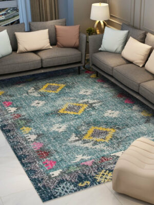 Fine Blue Printed Traditional Shaggy Vintage Rugs for Living Room Dining Room Bedroom Hall